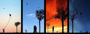 Męska Bluza z Kapturem z Nadrukiem 'Rowerzysta w Dolinie Rzeki na Tle Gór i Zachodzącego Słońca' – Gruba Bluza Kangurka