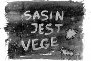 Sasin jest vege. Na masce. Autorska grafika i projekt.