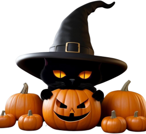 Halloween czarny kot w kapeluszu