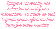 Lawyers constantly use sarcasm as a defense mechanism, so much so that regular people often mistake them for being negative.