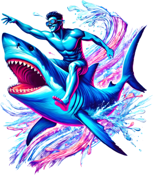 Koszulka Męska Slim "Surfing na Rekinie: Przygoda w Neonowych Falach"