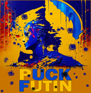 Koszulka -Napis puck futin z flagą Ukrainy w żółto niebieskich barwach