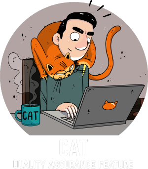 Pomarańczowy t-shirt/koszulka "CAT Quality Assurance Feature"