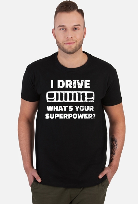 I Drive What's your Superpower? JEEP Cherokee XJ Grill, T-shirt męski, koszulka SKU: koszulka-K01_9aff51jv_4370199