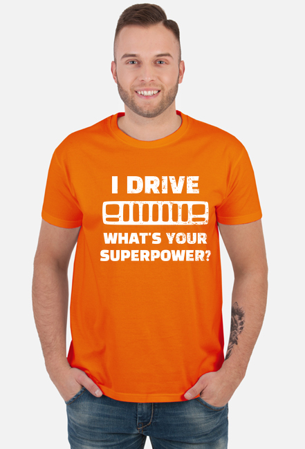 I Drive What's your Superpower? JEEP Cherokee XJ Grill, T-shirt męski, koszulka SKU: koszulka-K01_9aff51jv_4370199