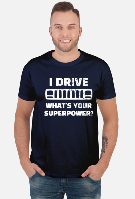 I Drive What's your Superpower? JEEP Cherokee XJ Grill, T-shirt męski, koszulka SKU: koszulka-K01_9aff51jv_4370199