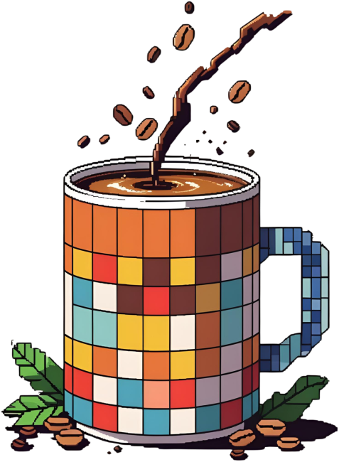 Kubek kawy w pikselowym stylu – dla tych, którzy startują dzień od „press start”.