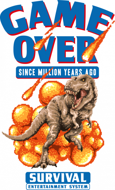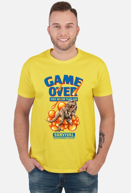 Koszulka o nazwie "GAME OVER DINOZAUR" w wielu wersjach kolorystycznych