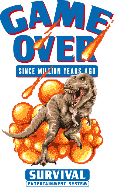 Koszulka o nazwie "GAME OVER DINOZAUR" w wielu wersjach kolorystycznych