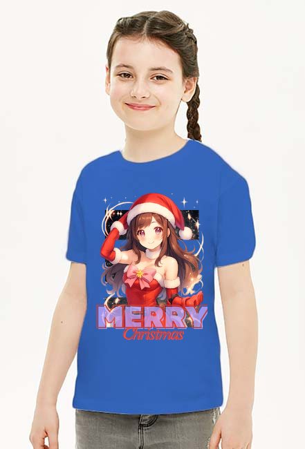 Wprowadź odrobinę anime magii do świątecznego stylu! Ten nadruk przedstawia uroczo narysowaną dziewczynę w stylu Mahō-shōjo, ubraną w świąteczny strój z czerwonymi rękawiczkami, futrzanym wykończeniem i gwiazdkową kokardą. Jej błyszczące fioletowe oczy i tło pełne gwiazd tworzą klimat jak z zimowego odcinka ulubionej serii. Napis „MERRY Christmas” dodaje energii i radości — idealny dla fanów anime, którzy chcą celebrować święta w stylu kawaii.
