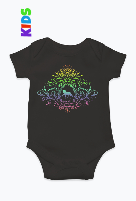 BODY NIEMOWLĘCE Z KONIKIEM - Emblem with a Rainbow Dressage Horse and a lotus ©DH SKU: body-niemowl-ce_7sgole73_4437595