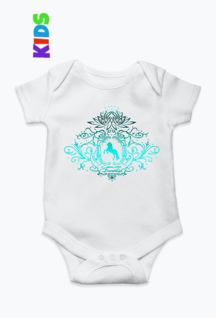 BODY NIEMOWLĘCE Z TURKUSOWYM KONIEM - Emblem with a Friesian Horse and a Lotus ©DH SKU: body-niemowl-ce_oktlyb3v_4437846