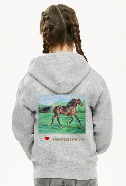 KOŃ OGIER ARABSKI - GHARIB - BLUZA Z KAPTUREM DZIECIĘCA Z KONIEM ARABSKIM - I LOVE ARABIANS - NADRUK Z 2 STRON SKU: dziewcz-ca-bluza-z-kapturem_9hcsbcsr_3801876