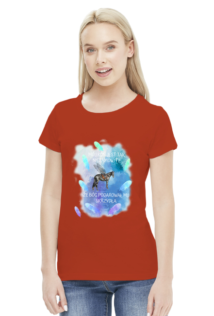 KOŃ WIERZCHOWY PÓŁKRWI - POŚWIATA - "MÓJ KOŃ JEST NIESAMOWITY" - T-SHIRT - KOLORY SKU: koszulka-damska_2s5wkda7_3804180