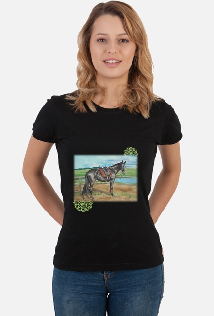 KOŃ WIERZCHOWY PÓŁKRWI - POŚWIATA -T-SHIRT - KOLORY SKU: koszulka-damska-K02_snnluw49_3804447
