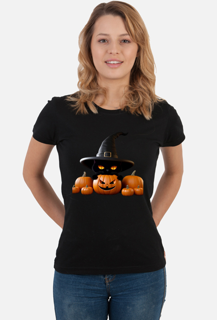 Halloween czarny kot w kapeluszu SKU: koszulka-damska-K02_l0n115qc_4703606