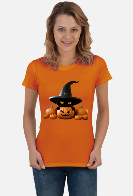 Halloween czarny kot w kapeluszu SKU: koszulka-damska-K02_l0n115qc_4703606