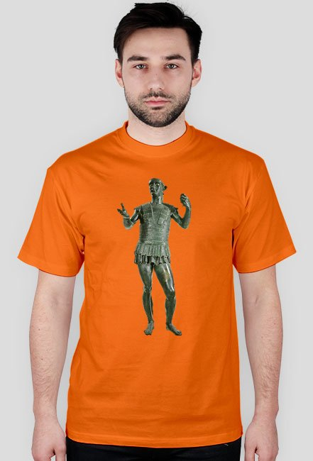 Model ma na sobie koszulkę w rozmiarze M. Maksymalne wymiary nadruku to 30cm (szerokość)