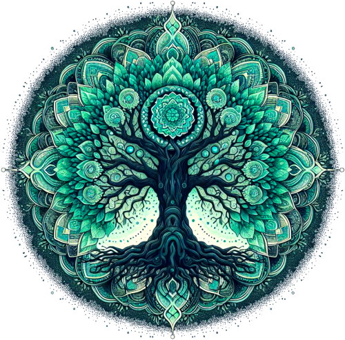 Nadruk jest inspiracją połączenia filozofii z siłami natury. Dobrze ukorzeniona świadomość, owocuje silnym pniem i obfitością w koronie.