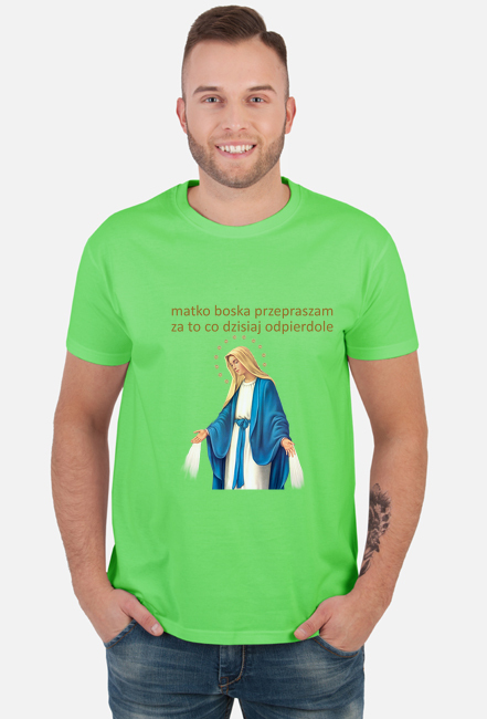 Klasyczna męska koszulka bawełniana z nadrukiem w technologi DTG.
