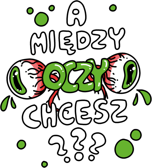 Zabawny nadruk ,,A między oczy chcesz???,, w wersji zielonej. Ciekawy prezent dla każdego!