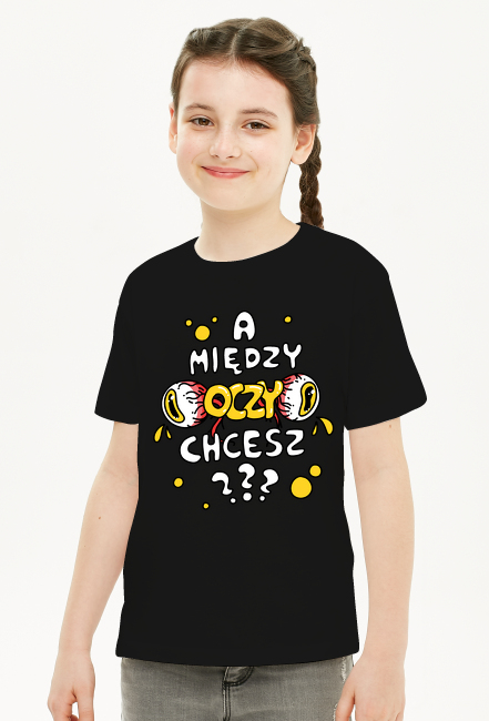 T-shirt kid ,,A między oczy chcesz???,, żółty SKU: koszulka-dziewczynka-new_ccuoejl2_4715244