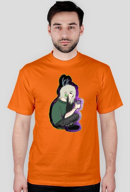 Model ma na sobie koszulkę w rozmiarze M. Maksymalne wymiary nadruku to 30cm (szerokość)