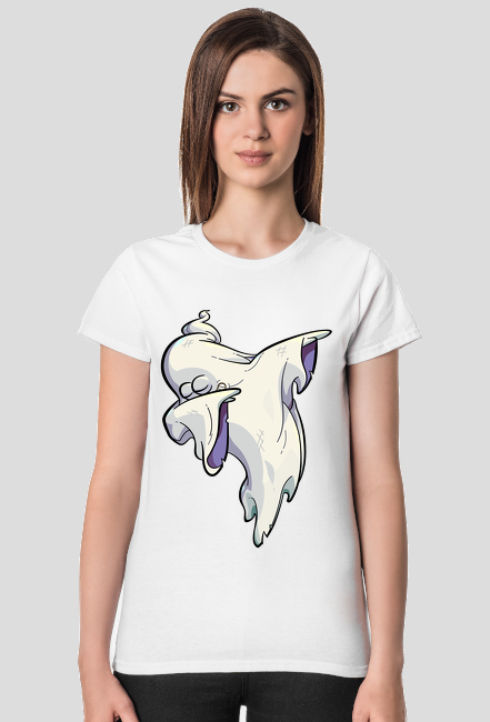 Duch wykonujący taniec dab - komiksowy styl - Halloween - damska koszulka SKU: koszulka-damska_llzd0lqk_3781129