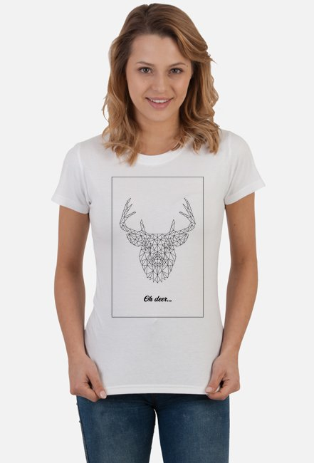 Jeleń - natura - przyroda - zwierze - sztuka - linie - czarny - napis - humor SKU: koszulka-damska-K02_5ftxyfbz_3598598