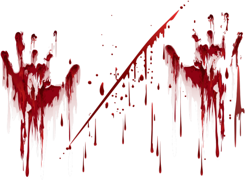 Grafika przedstawiająca krwawe ślady dłoni wraz z ociekającą krwią. Idealne na Halloween lub tematyczne klimaty w stylu zombie.