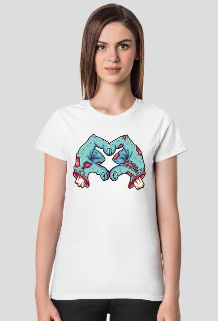 Ręce zombi w kształcie serca - krew - grafika - komiks - Halloween - damska koszulka SKU: koszulka-damska_sxt4fnxj_3780566