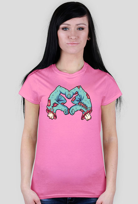 Ręce zombi w kształcie serca - krew - grafika - komiks - Halloween - damska koszulka SKU: koszulka-damska_sxt4fnxj_3780566