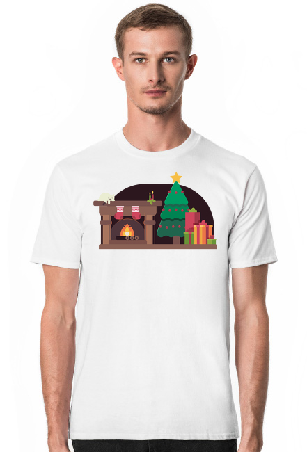 Świąteczna atmosfera - choinka - skarpeta - śnieg - prezenty - kominek - kot - Boże Narodzenie - męska koszulka SKU: koszulka-K01_oy5r4d63_3799988