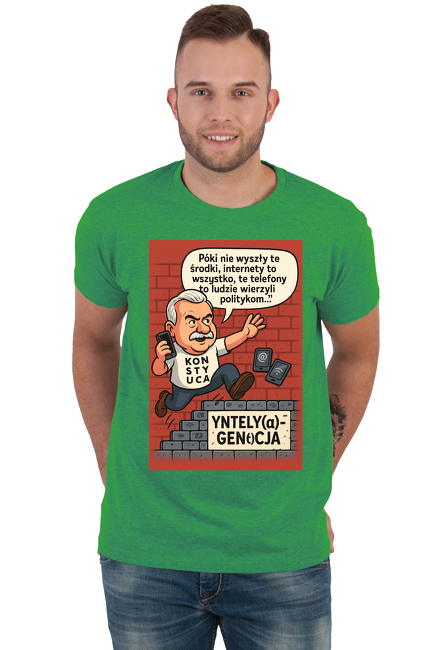 Klasyczna męska koszulka bawełniana z nadrukiem w technologi DTG.