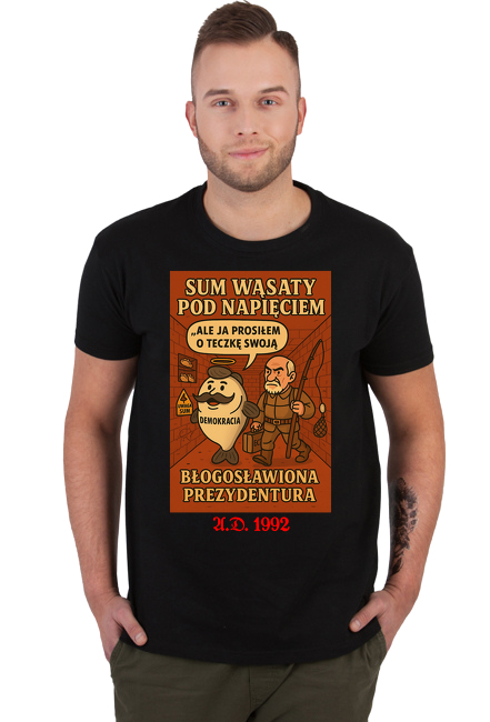 Klasyczna męska koszulka bawełniana z nadrukiem w technologi DTG.
