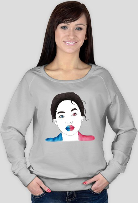 Modelka ma na sobie bluzę w rozmiarze S. Maksymalne wymiary nadruku to 30cm (szerokość)