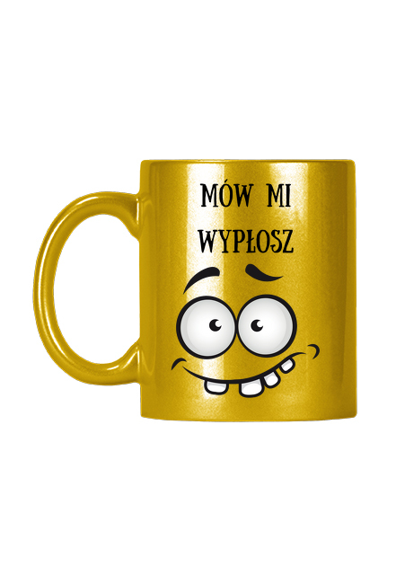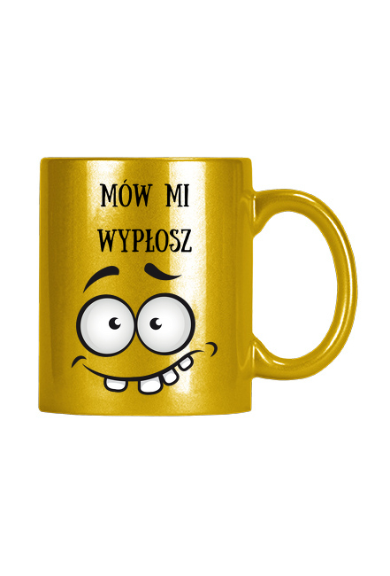 Złoty kubek ceramiczny z napisem "Mów mi Wypłosz"