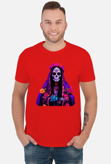 Wysokiej jakości koszulka z nadrukiem Santa Muerte.