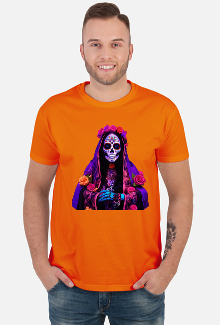 Wysokiej jakości koszulka z nadrukiem Santa Muerte.