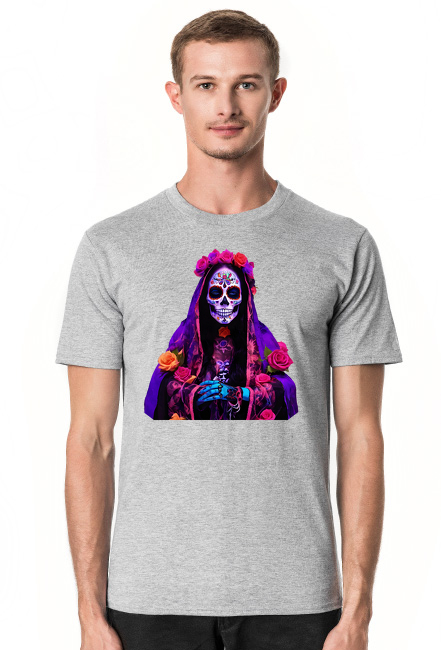 Wysokiej jakości koszulka z nadrukiem Santa Muerte.