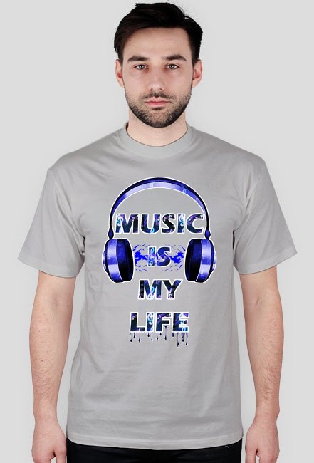 Koszulka Music is my life z kolekcji dla Niego. Muzyczna koszulka dla lubiących dobre brzmienie na słuchawkach.