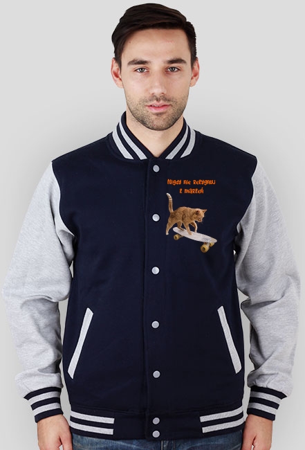 Bluza varsity jacket inspirowana amerykańskim stylem studenckim to opcja dla każdego, kto ceni sobie połączenie funkcjonalności z oryginalnym designem. Materiał, z którego została wykonana to wysokiej jakości bawełna, która ma przewiewną strukturę i daje uczucie miękkości i wygody. Posiada kontrastowe paski na ściągaczach u dołu bluzy i rękawów. Bluza jest zapinana na zatrzaski w kontrastowym kolorze.