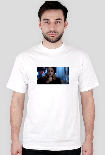 Model ma na sobie koszulkę w rozmiarze M. Maksymalne wymiary nadruku to 30cm (szerokość)