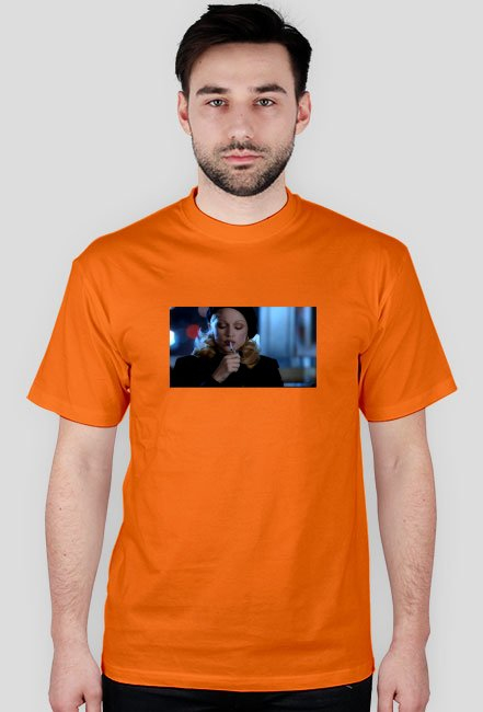 Model ma na sobie koszulkę w rozmiarze M. Maksymalne wymiary nadruku to 30cm (szerokość)