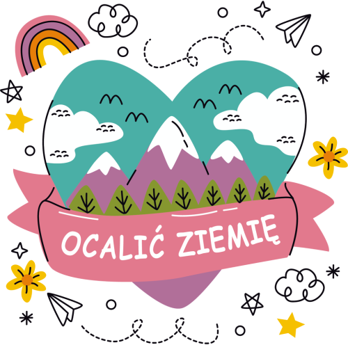 Przedstawiamy nasze inspirujące body dla niemowląt z unikalną grafiką serca, które w dolnej części przedstawia góry i drzewa, a w górnej części niebo z chmurami. Serce zostało owinięte szarfą z napisem "Ocalić ziemię", podkreślającym ważność dbania o naszą planetę.