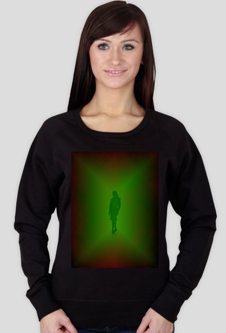 Modelka ma na sobie bluzę w rozmiarze S. Maksymalne wymiary nadruku to 30cm (szerokość)