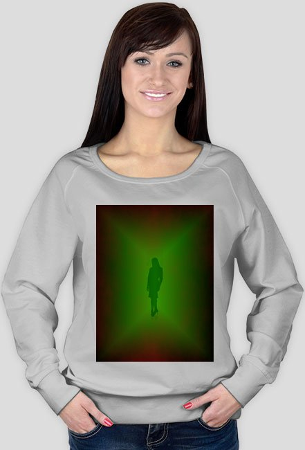 Modelka ma na sobie bluzę w rozmiarze S. Maksymalne wymiary nadruku to 30cm (szerokość)
