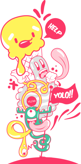 Młodzieżowa koszulka ze śmiesznym i kolorowym nadrukiem dostosowana do trendów aktualnie panujących wśród nastolatków i młodzieży. Dominujący kolor : różowy