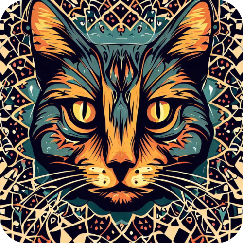 Indulge in the beauty of feline art with our exclusive collection of AI-designed t-shirts featuring artistic and colorful cat designs in various styles like Arabic, Moroccan, Metalwork, and Steampunk.