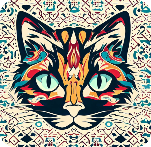 Indulge in the beauty of feline art with our exclusive collection of AI-designed t-shirts featuring artistic and colorful cat designs in various styles like Arabic, Moroccan, Metalwork, and Steampunk.